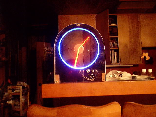 This is a digital photo of the front, i had to put white paper behind the clock because the camera wouldn't take good pictures of it with a black backdrop (the black acrylic sheet)