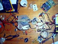 Here is a photo of construction of my first clock, yes i did build two. The first one was mostly a test to make sure that it would all work right, and to work out all the kinks there always are in new projects. This way when i built the second one i had the board almost unmodified unlike the first one which had components hanging off all over the place.