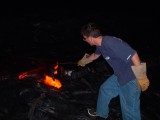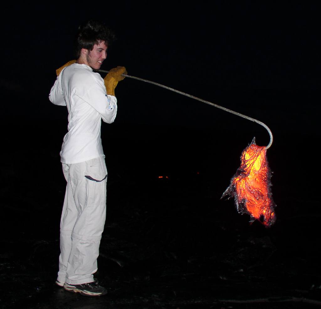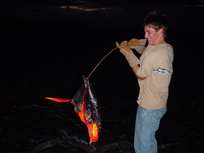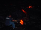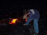 Travis poking at the lava with our metal rod (actually a weed eater