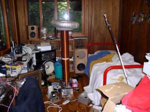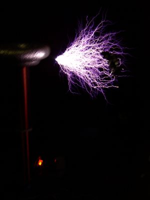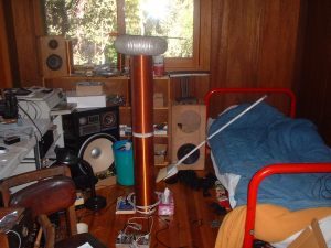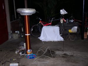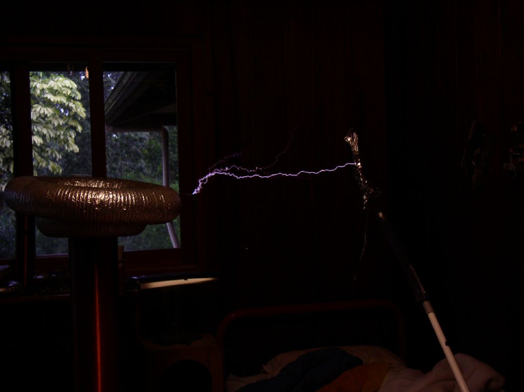 Then I decided I wanted more power... So i moved the coil into the garage and hooked it up to 240v.
